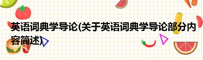 英语词典学导论(关于英语词典学导论部分内容简述)