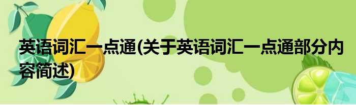 英语词汇一点通(关于英语词汇一点通部分内容简述)