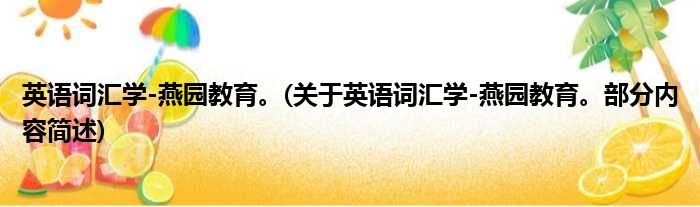 英语词汇学-燕园教育。(关于英语词汇学-燕园教育。部分内容简述)