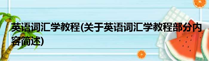 大家好,今天小方来说说一篇关于英语词汇学教程,关于英语词汇学教程部分内容简述的文章,那么现在就为大家来简单介绍下,希望对各位小伙伴们有所帮助。