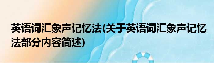 英语词汇象声记忆法(关于英语词汇象声记忆法部分内容简述)