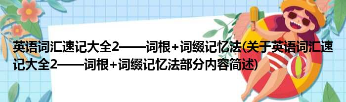 英语词汇速记大全2——词根+词缀记忆法(关于英语词汇速记大全2——词根+词缀记忆法部分内容简述)