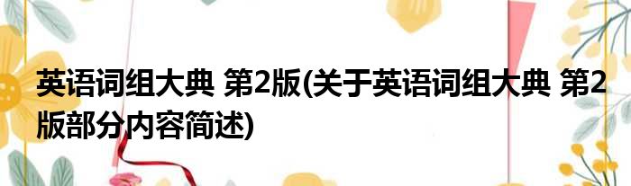 大家好,今天小方来说说一篇关于英语词组大典 第2版,关于英语词组大典 第2版部分内容简述的文章,那么现在就为大家来简单介绍下,希望对各位小伙伴们有所帮助。