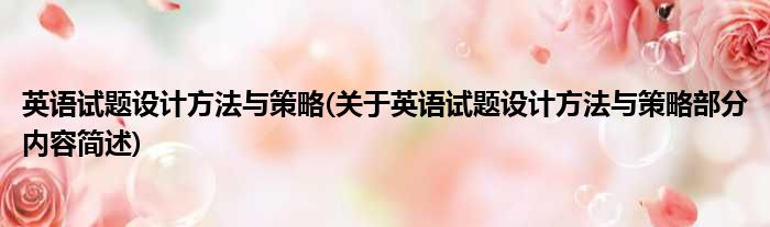 英语试题设计方法与策略(关于英语试题设计方法与策略部分内容简述)