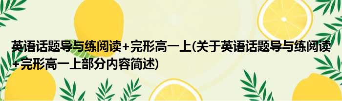 英语话题导与练阅读+完形高一上(关于英语话题导与练阅读+完形高一上部分内容简述)