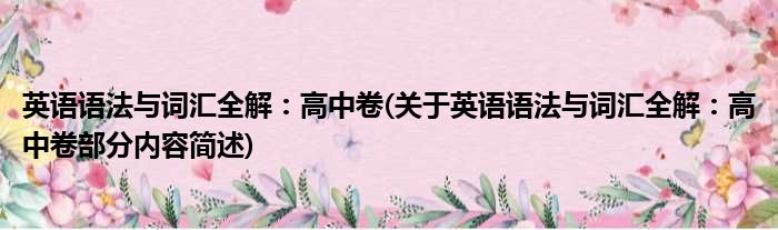英语语法与词汇全解:高中卷(关于英语语法与词汇全解:高中卷部分内容简述)