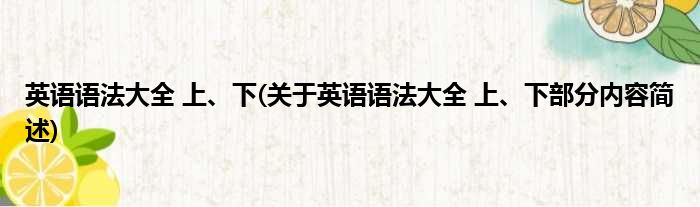 英语语法大全 上、下(关于英语语法大全 上、下部分内容简述)