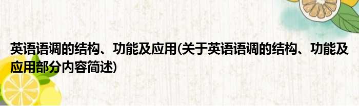 英语语调的结构、功能及应用(关于英语语调的结构、功能及应用部分内容简述)