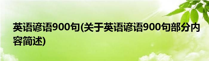 英语谚语900句(关于英语谚语900句部分内容简述)