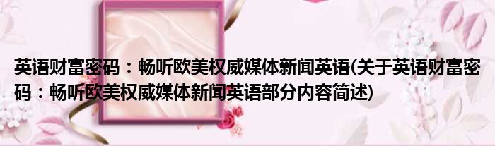 大家好,今天小方来说说一篇关于英语财富密码:畅听欧美权威媒体新闻英语,关于英语财富密码:畅听欧美权威媒体新闻英语部分内容简述的文章,那么现在就为大家来简单介绍下,希望对各位小伙伴们有所帮助。