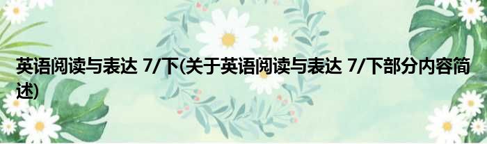 英语阅读与表达 7/下(关于英语阅读与表达 7/下部分内容简述)