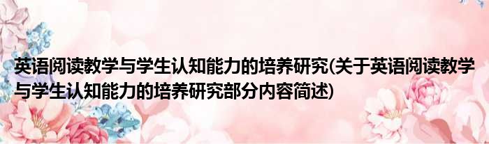 英语阅读教学与学生认知能力的培养研究(关于英语阅读教学与学生认知能力的培养研究部分内容简述)