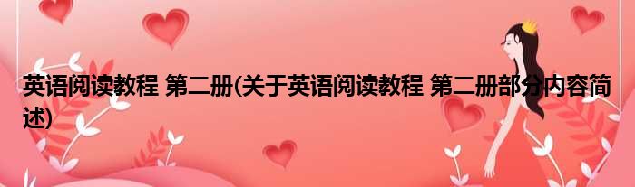 大家好,今天小方来说说一篇关于英语阅读教程 第二册,关于英语阅读教程 第二册部分内容简述的文章,那么现在就为大家来简单介绍下,希望对各位小伙伴们有所帮助。