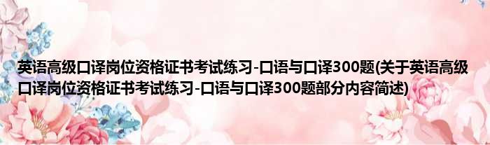 英语高级口译岗位资格证书考试练习-口语与口译300题(关于英语高级口译岗位资格证书考试练习-口语与口译300题部分内容简述)