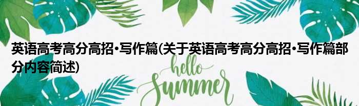 英语高考高分高招·写作篇(关于英语高考高分高招·写作篇部分内容简述)