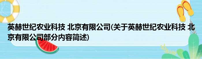 英赫世纪农业科技 北京有限公司(关于英赫世纪农业科技 北京有限公司部分内容简述)