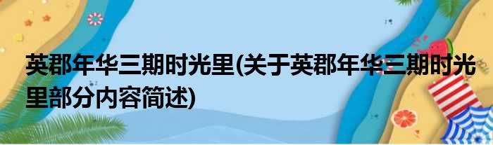 英郡年华三期时光里(关于英郡年华三期时光里部分内容简述)