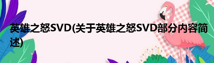 英雄之怒SVD(关于英雄之怒SVD部分内容简述)