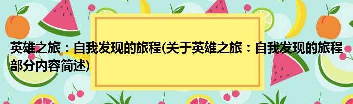 英雄之旅:自我发现的旅程(关于英雄之旅:自我发现的旅程部分内容简述)