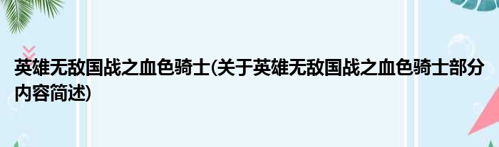 英雄无敌国战之血色骑士(关于英雄无敌国战之血色骑士部分内容简述)