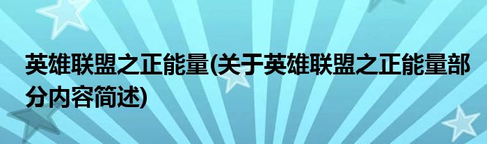 英雄联盟之正能量(关于英雄联盟之正能量部分内容简述)