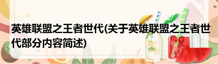英雄联盟之王者世代(关于英雄联盟之王者世代部分内容简述)
