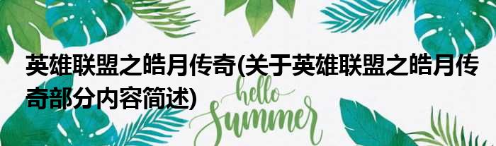英雄联盟之皓月传奇(关于英雄联盟之皓月传奇部分内容简述)