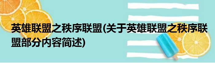英雄联盟之秩序联盟(关于英雄联盟之秩序联盟部分内容简述)