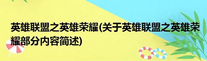 英雄联盟之英雄荣耀(关于英雄联盟之英雄荣耀部分内容简述)