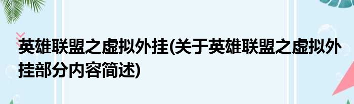 英雄联盟之虚拟外挂(关于英雄联盟之虚拟外挂部分内容简述)