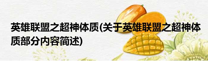 英雄联盟之超神体质(关于英雄联盟之超神体质部分内容简述)