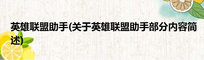 英雄联盟助手(关于英雄联盟助手部分内容简述)