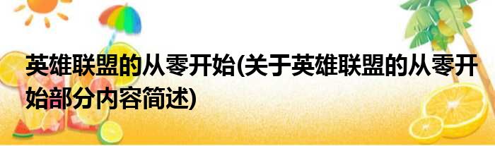 英雄联盟的从零开始(关于英雄联盟的从零开始部分内容简述)