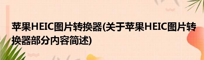 苹果HEIC图片转换器(关于苹果HEIC图片转换器部分内容简述)