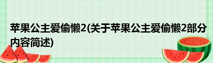 苹果公主爱偷懒2(关于苹果公主爱偷懒2部分内容简述)