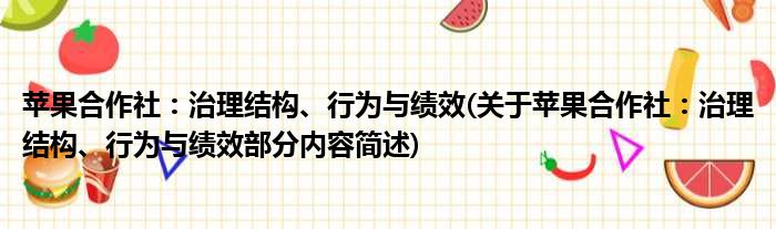苹果合作社:治理结构、行为与绩效(关于苹果合作社:治理结构、行为与绩效部分内容简述)