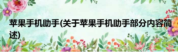 苹果手机助手(关于苹果手机助手部分内容简述)