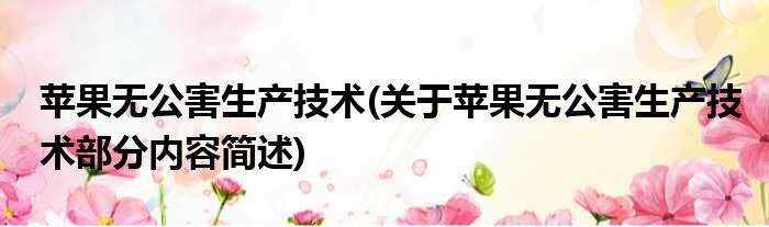 苹果无公害生产技术(关于苹果无公害生产技术部分内容简述)