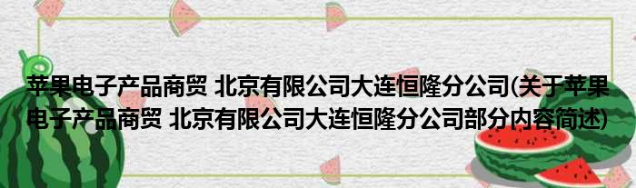 苹果电子产品商贸 北京有限公司大连恒隆分公司(关于苹果电子产品商贸 北京有限公司大连恒隆分公司部分内容简述)