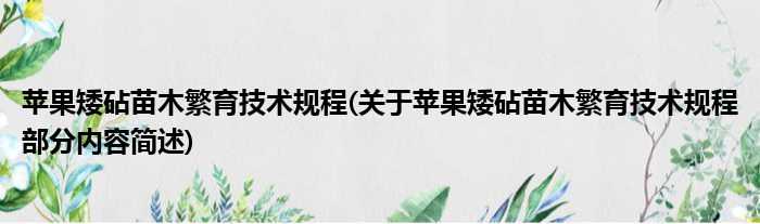 苹果矮砧苗木繁育技术规程(关于苹果矮砧苗木繁育技术规程部分内容简述)