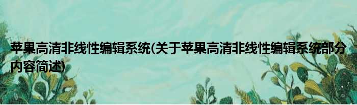苹果高清非线性编辑系统(关于苹果高清非线性编辑系统部分内容简述)
