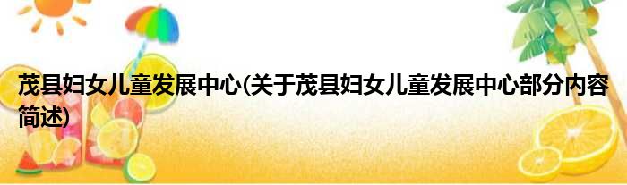 茂县妇女儿童发展中心(关于茂县妇女儿童发展中心部分内容简述)