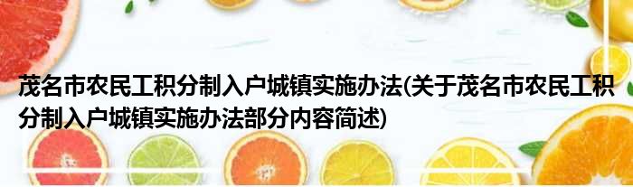 茂名市农民工积分制入户城镇实施办法(关于茂名市农民工积分制入户城镇实施办法部分内容简述)