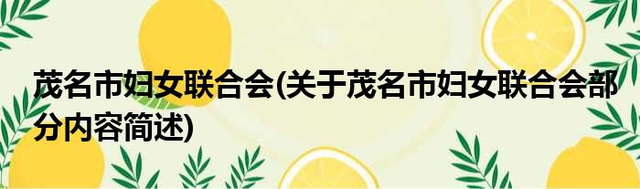茂名市妇女联合会(关于茂名市妇女联合会部分内容简述)