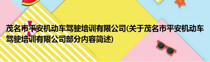 茂名市平安机动车驾驶培训有限公司(关于茂名市平安机动车驾驶培训有限公司部分内容简述)