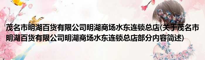 茂名市明湖百货有限公司明湖商场水东连锁总店(关于茂名市明湖百货有限公司明湖商场水东连锁总店部分内容简述)