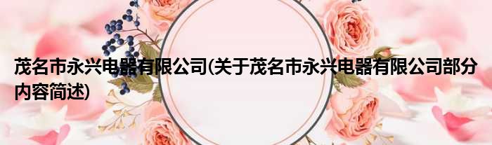 茂名市永兴电器有限公司(关于茂名市永兴电器有限公司部分内容简述)
