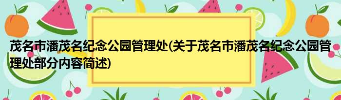 茂名市潘茂名纪念公园管理处(关于茂名市潘茂名纪念公园管理处部分内容简述)