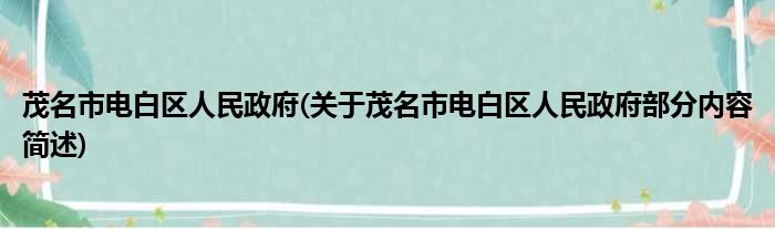 茂名市电白区人民政府(关于茂名市电白区人民政府部分内容简述)