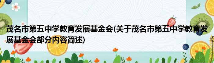 茂名市第五中学教育发展基金会(关于茂名市第五中学教育发展基金会部分内容简述)